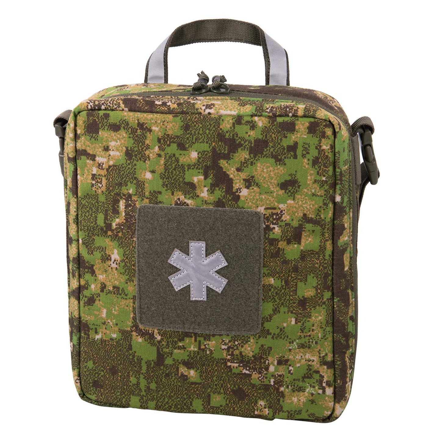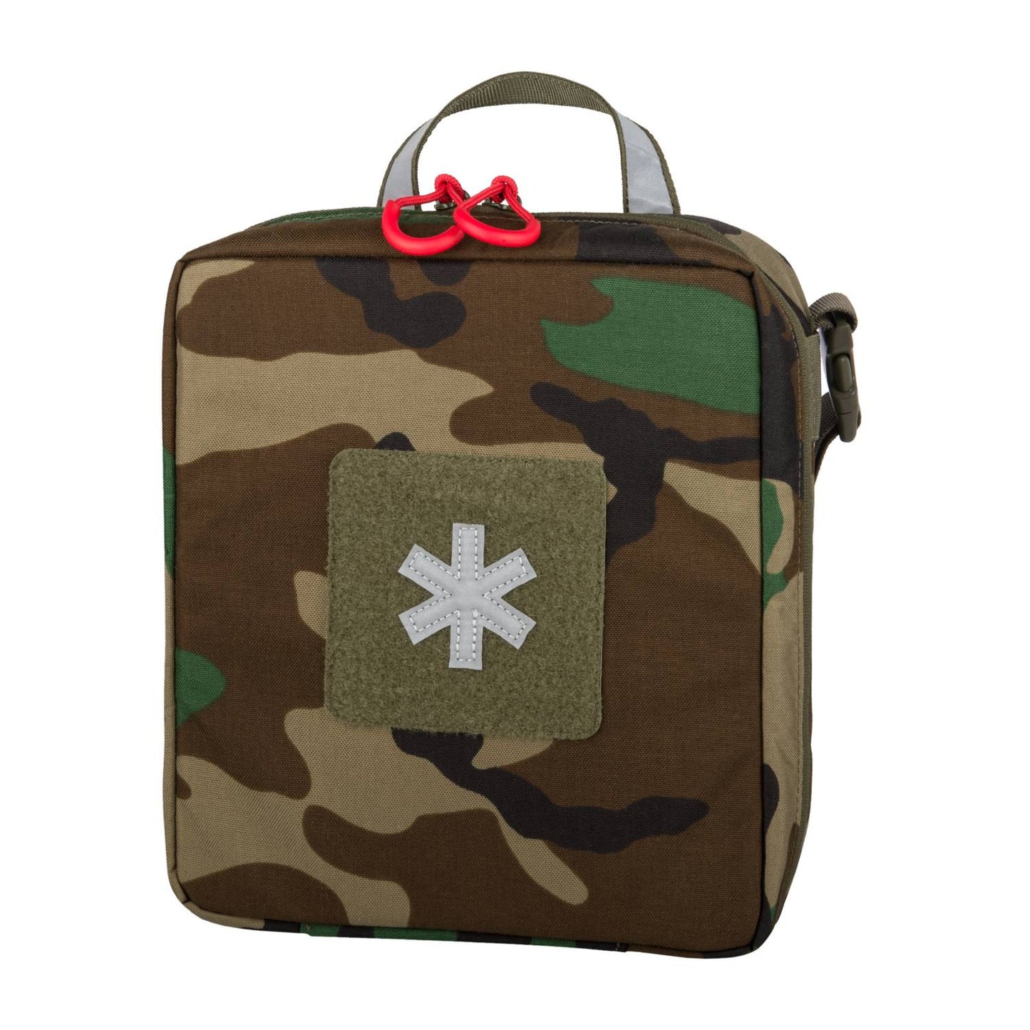 Automotive Med Kit® was designed as the main vehicular first aid kit. Its compact, flat form allows it to be fit under the seats, in side door or seat pockets, while lack of sharp edges prevents snagging. The front part of the Med Kit has a large panel of loop velcro for individual marking, with a reflective panel for quick identification. Also handles are marked with reflective tape to facilitate their finding with minimal light. Thanks to a detachable shoulder strap, the Med Kit can be worn just like a messenger bag.