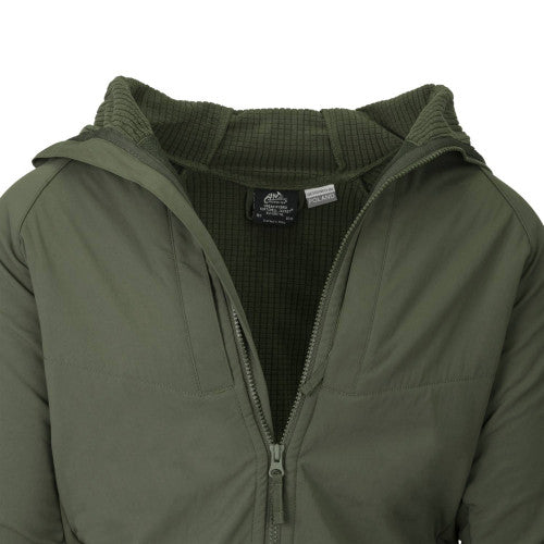 - Elastische Bänder um die Kapuzenkante, die Ärmelbündchen und die Unterseite der Jacke