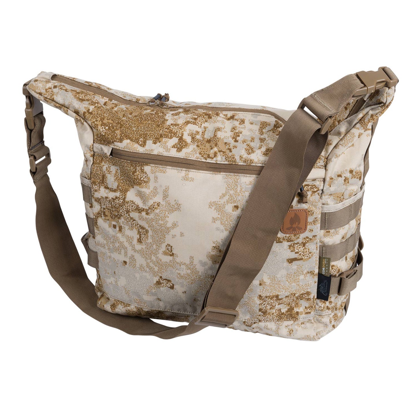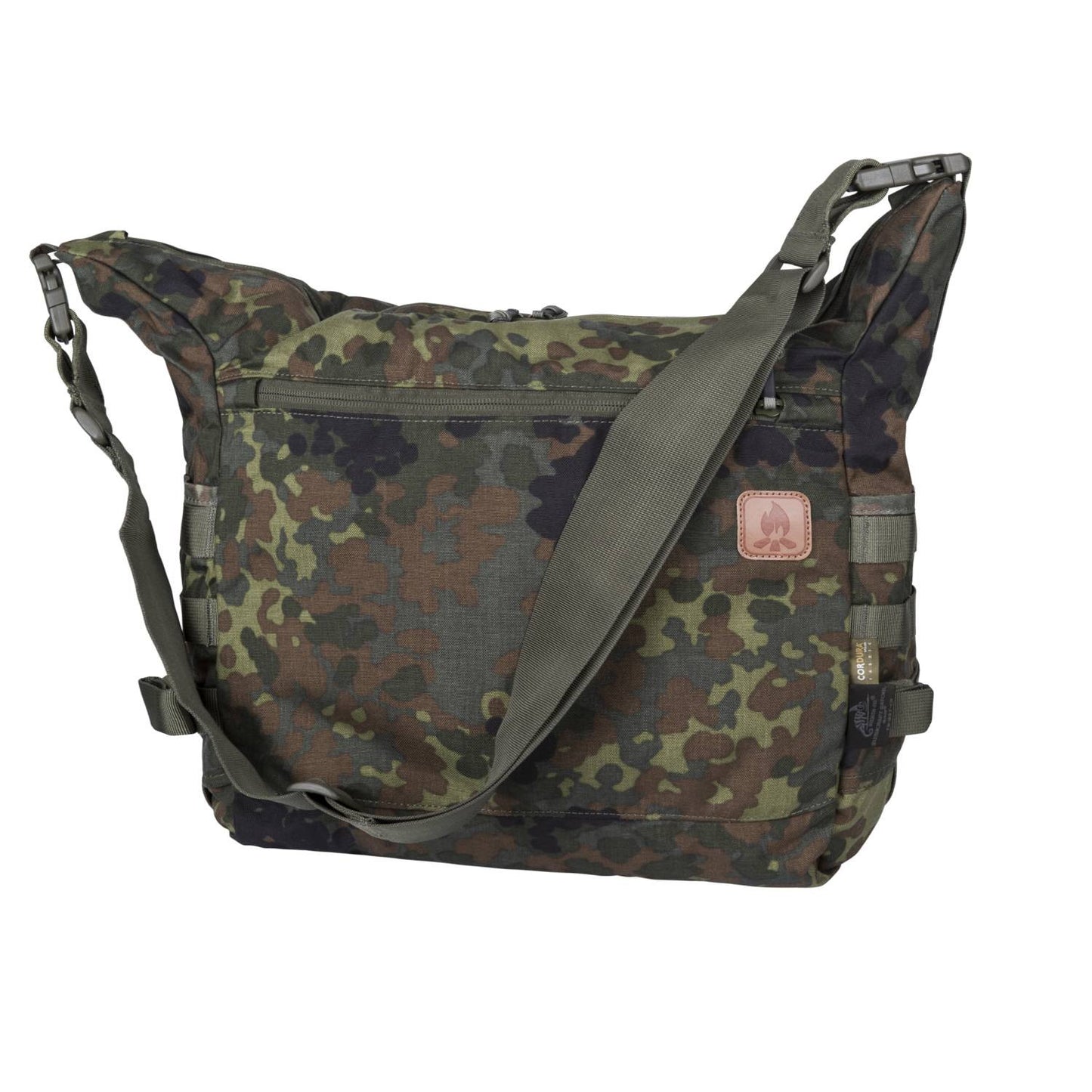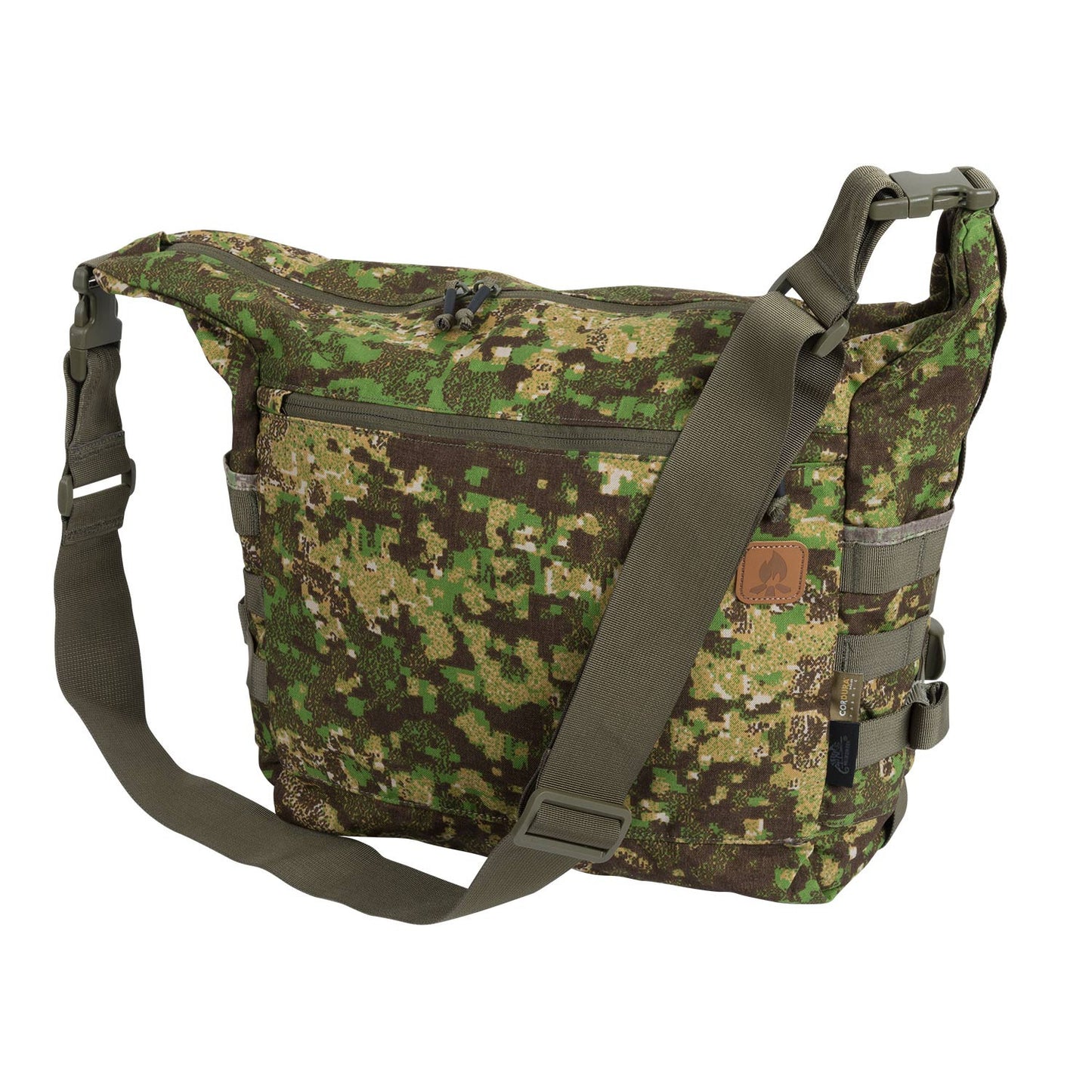 Bushcraft Satchel® ist unsere Allzweck-Feldtasche. Kann als Allrounder für einen Tagesausflug oder für alltägliche städtische Aktivitäten verwendet werden. Extrem geräumig. Die Hauptkammer besteht aus einer Netztasche mit Reißverschluss für wertvolle Gegenstände sowie zwei elastischen Kordeltaschen, z. B. Wasserflaschenhalter. Auf der Außenseite hat die Tasche eine große Reißverschlusstasche und zwei offene Taschen. MOLLE / PALS-Paneele an den Seiten- und Bodenschlaufen ermöglichen das Anbringen zusätzlicher Beutel und Gegenstände. Kompressionsriemen ermöglichen die Größenanpassung.